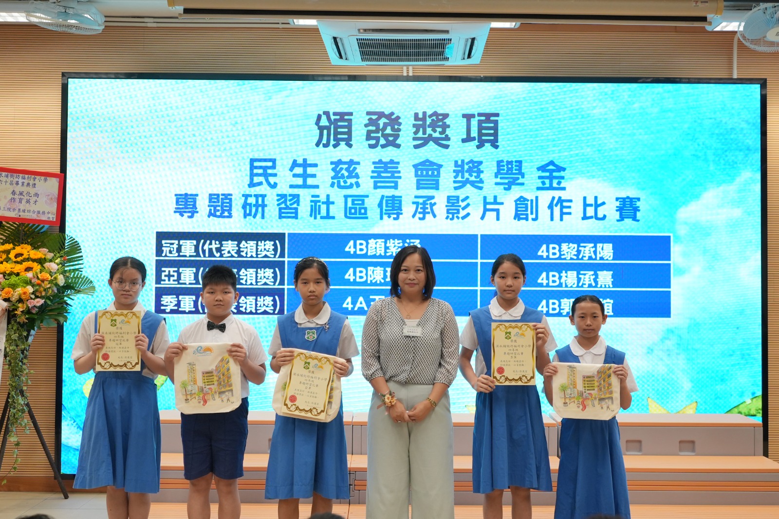 深水埔街坊福利會小學的校訓與民生慈善會「傳承創新、生命賦能、以港為家」的核心價值不謀而合。民生慈善會一直積極支持學校的發展,包括舉辦「專題研習社區傳承影片創作比賽」,鼓勵學生運用科技推進學習與進步。席上,民生慈善會代表黃琬涴女士頒發「專題研習社區傳承影片創作比賽」冠亞季軍組的獎狀及民生環保袋,向學生們致以鼓勵。