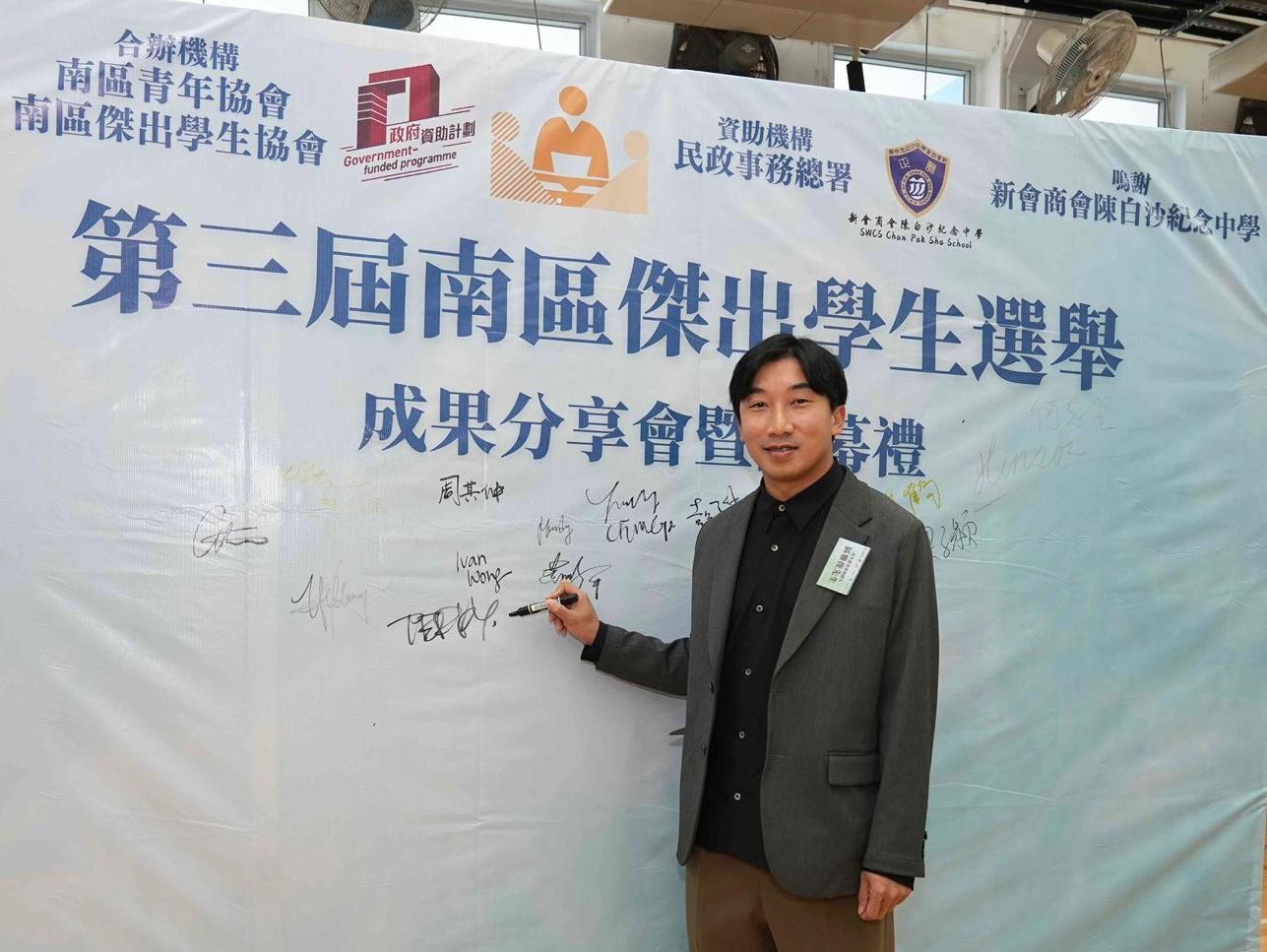 民生慈善會一直致力推動青年培育及社區教育發展,積極支持本地青年培訓項目。本會榮幸是次能作為支持機構,贊助並參與由民政事務總署撥款資助、南區青年協會與南區傑出學生協會合辦的「第三屆南區傑出學生選舉」。創辦人區雅俊先生更受邀以主禮嘉賓身份出席「第三屆南區傑出學生培訓計劃成果分享會暨閉幕禮」,親自見證新一代領袖的誕生。